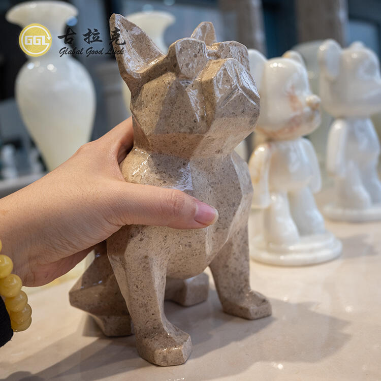Natual Marble Carved Dog Hand Carved Stone Sculpture Marble Dog Statue Gift or Home Decoration